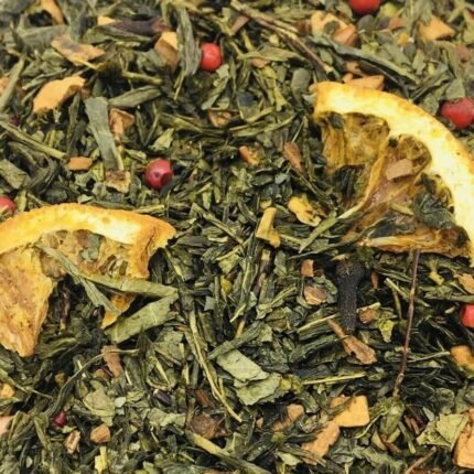 Ingredientes: té negro, canela, trocitos de manzana, pétalos de rosa y aroma natural.